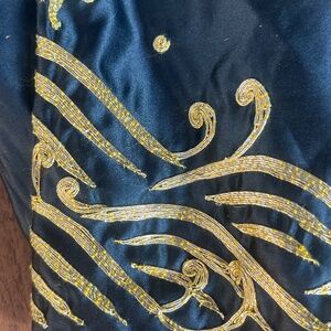 stunning fully hand embroidered, front, back, and sleeves black silk tunic, 48" in length. craftsmanship is top notch