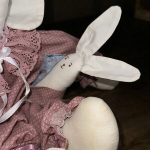 vintage floppy ear stuffed bunny rabbit handmade custom w/baby approx. 17” length