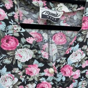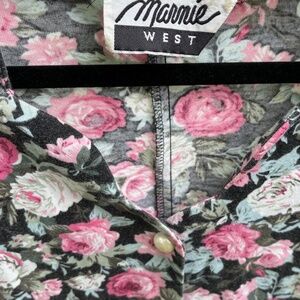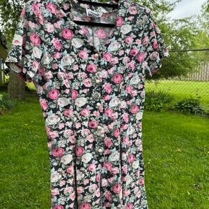vintage floral romper scalloped neck pearl like button size 8 cotton material wear this to your Olan Mills photo shoot great neckline babydoll style pleated shorts would look great with combat boots seams along bodice for shape