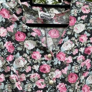 vintage floral romper scalloped neck pearl button size 8 summer playsuit