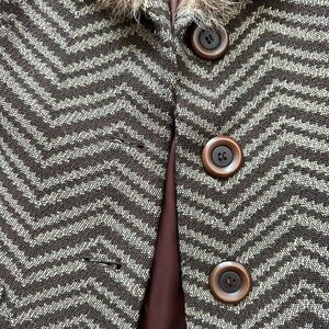 vintage frenchi chevron patterned coat with fur collar
