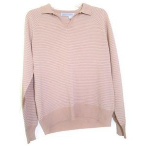 vintage 1980s 1970s 70s 80s vtg sport long sleeves tan beige white nude top stripes classic prep preppy peter collar collared keyhole cutout cut out womens clothing clothes plus size xl extra stretch knit key hole plus givenchy shirt striped sweater polo beige size large 10 12 38
