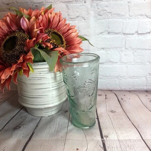 vintage glass vase with beach themed imprints