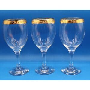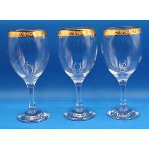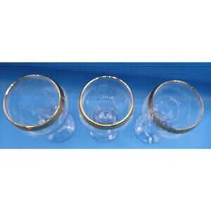 vintage gold rimmed clear glass short wine glasses set of 3 retro dinner party