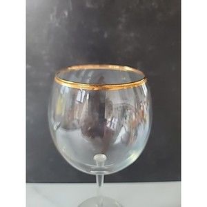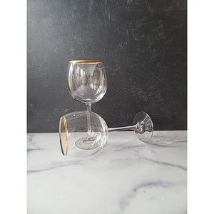 This is a set of 2 vintage gold rimmed stemwear wine glasses.