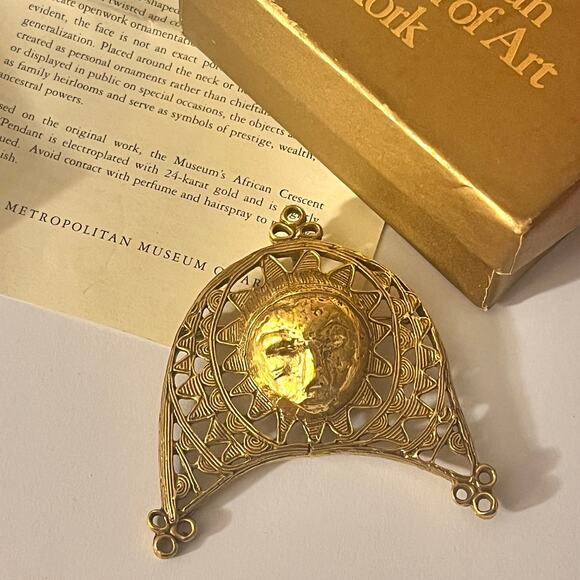 vintage gold tone AFRICAN CRESCENT PIN/PENDANT MMA Metropolitan Museum of Art