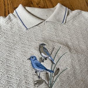 vintage grandma collared bird lightweight long sleeve sweatshirt size la…
