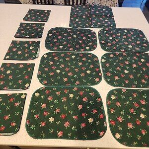 vintage green placemats set 6 Matching Napkins Christmas Red Holly