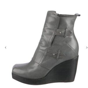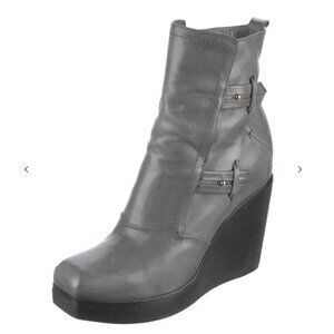 vintage Costume National silver/gray genuine leather y2k era cybergoth wedge boots, women's 8, true to size