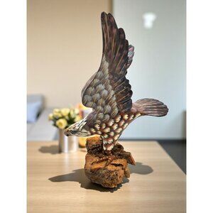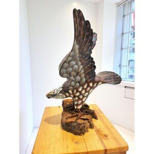 Beautifully crafted vintage American eagle statue, hand-painted on wood, perfect for collectors and home decor enthusiasts. This unique piece blends artistry and patriotism, making it a timeless addition to any space.