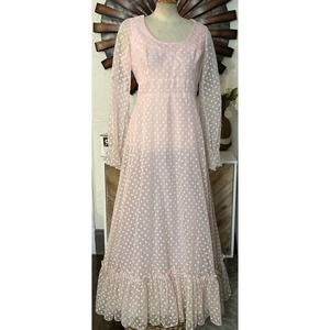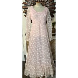 vintage jack Bryan sheer polka dot pink Prairie Maxi Dress Medium