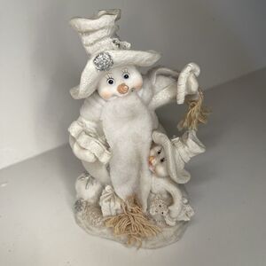 This vintage K’s Collection figurine features a charming snowwoman and her child, holding a sign that reads "Ordering Gifts". Made of resin with a speckled finish, this small-sized figurine is perfect for adding a touch of whimsy to your Christmas decor.