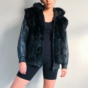 split end Ltd. amazing vintage leather jacket with a removable fur vest that ca be use as a single piece. 2 in one 1. the leather jacket has 2 side pockets and zipper for closure. Vest has a collar and zipper at front for closure