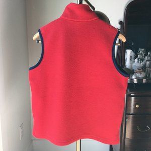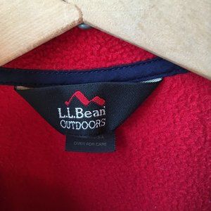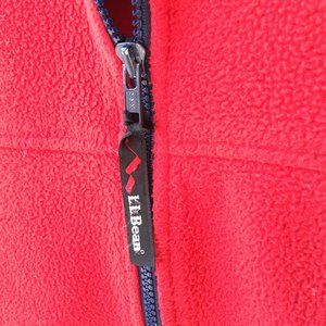 get ready for fall with this vintage bright red fleece vest from l. l. bean outdoors. red lightweight fleece with blue edging at armholes, zipper edge, and pocket holes. full zip. pockets at each hip. good used condition, no pilling or stains. light chipping to zipper paint and fraying to zipper pull, see photo. women's size small.