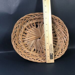 vintage loose weave rattan wicker basket oval shape shallow wall collage gallery