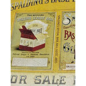 Rare vintage metal sign from the 1993 NY Historical Society featuring the Spalding Baseball Guide. A must-have for collectors and baseball enthusiasts.