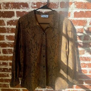 animal print, snakeskin, office attire, business casual, button down, neutral, retro