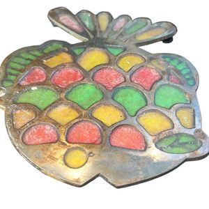 vintage mid century Taiwan stained glass and brass metal trivet fish