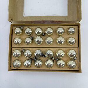 vintage miniature 15mm glass ornaments set of 24 silver In original box