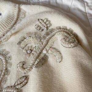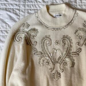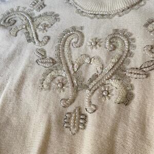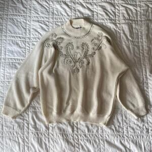vintage mock neck embellished pearl bead knit sweater sz XL fairy christmas