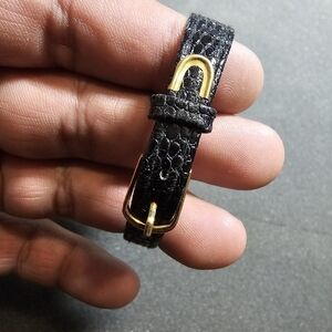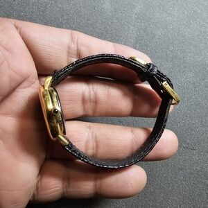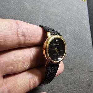 vintage oleg cassini Ladies Quartz Fashion Watch Gold Tone Working Flawed loop of strap is broken and may need to be replaced sold as is see pictures for reference