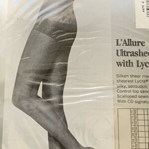 Christian Dior L'Allure Silken Sheers in a shrimp hue. Elegant and stylish. vintage package of Christian Dior L'Allure Silken Sheers pantyhose in "Shrimp" color, size 4. These are ultrasheer with a control top and sandalfoot