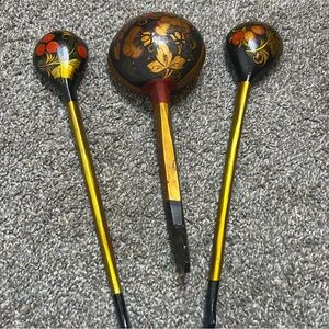 vintage painted lacquered spoons Russian Khokhloma ladle large spoon lot