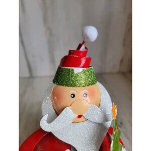 vintage pier 1 ? Metal fat jolly santa bobble xmas decor figure glitter tree cla