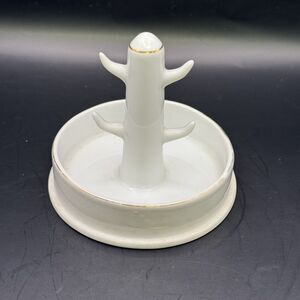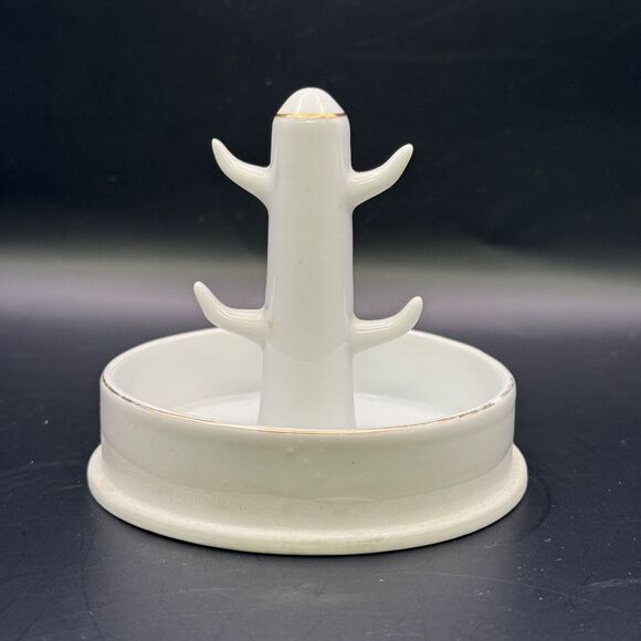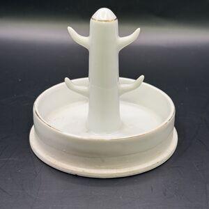 The vintage porcelain ring holder dish is a charming and practical vanity accessory for storing rings and other small jewelry items. Its elegant design adds a touch of sophistication to any dressing table or vanity. Made from high-quality porcelain, this ring holder dish is a timeless piece that can also be a stylish decorative item for any room.