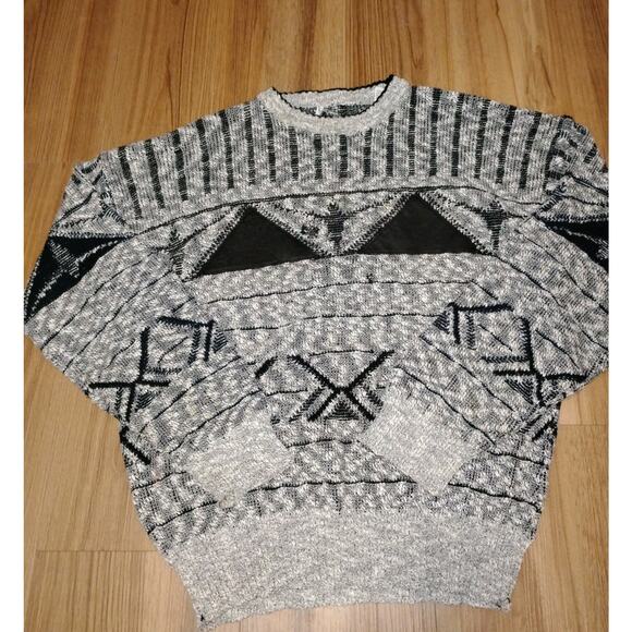 vintage pullover Cosby style or grandpa style Long Sleeve Geometric Patern M 80'