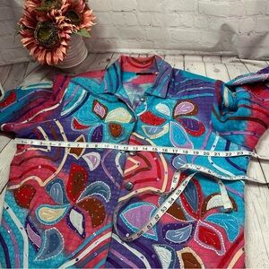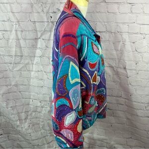 vintage quilted cotton jacket made in india colorful geometric sz XL sequins
