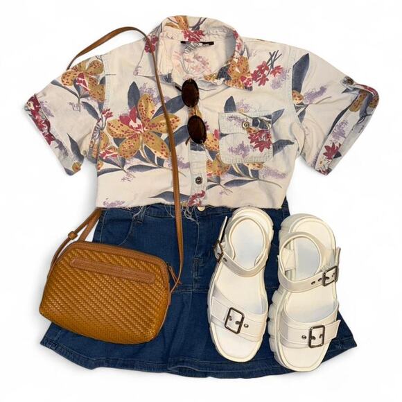 Adorable vintage Sag Harbor cropped Hawaiian button up shirt with floral pattern