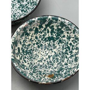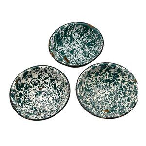 vintage set of 3 metal bowls green white black outdoors camping picnic 6" READ