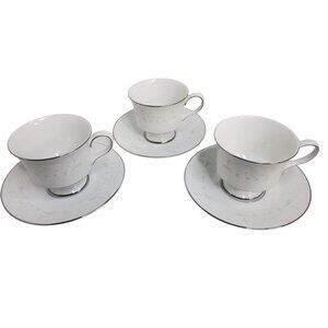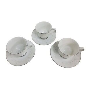 vintage set of 3 sango florence platinum trim porcelain dinnerware tea cups & saucers