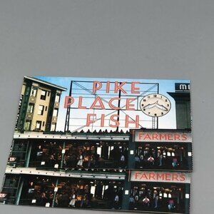 vintage set of 5 post cards San Fransico bridge pike place fish farmers READ