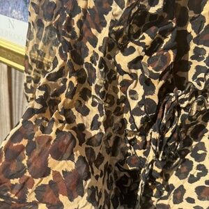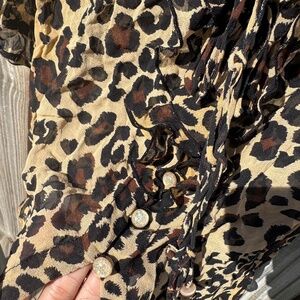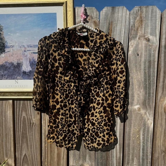 super cute see-through vintage leopard / cheetah printed flowy blouse top with ruffle detailing