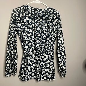 vintage ship n shore blouse 1970’s Tie Waist Button Front Long Sleeve floral