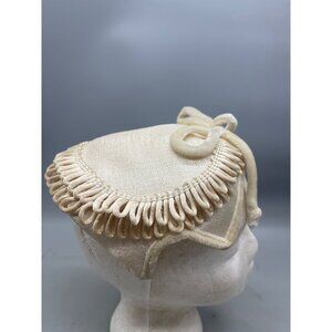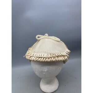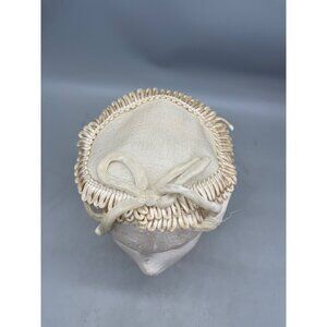 vintage skull cap hat ribbon bow ivory costume theater one size shine READ