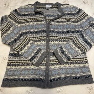 vintage skyr 100% lambswool zip-up fair isle cardigan – size small