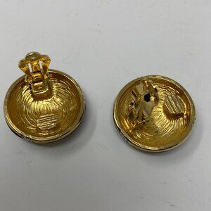 vintage st john round black enamel & rhinestone clip on earrings - gently used