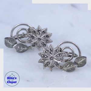 Vintage Sterling Silver - Marcasite Studded Flower Vine 6g - Screw-Back. type: earrings