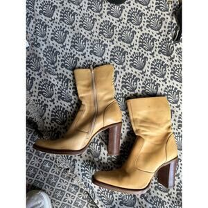 banana leather colored vintage steve madden heeled boots. naturally distressed look amazing in person