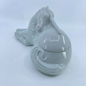 • vintage takahashi white ceramic lidded unicorn trinket box