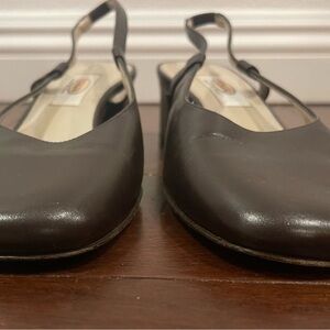 these shoes are in good condition-they’ve been basically sitting in my closets for over 20 years. Y2K shoes 🤖 Vintage brown Talbots sling back with a black heel. They are 6 narrow. Free shipping! 💙