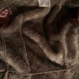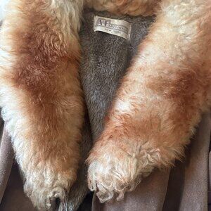 vintage tan suede wrap coat with fu collar size 6