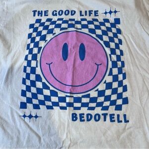 🧁vintage the good life white smiley face graphic top y2k retro psychedelic vtg