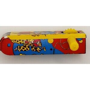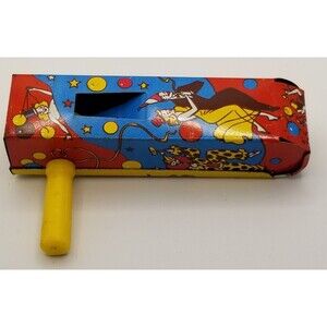 vintage tin lithograph ratchet style US Metal Toy Co noisemaker party theme