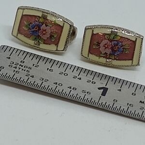 * vintage tiny enamel cloisonne flowers clip on earrings
