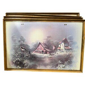 vintage tv trays set of 4 tray top painting farmhouse barn mailbox READ