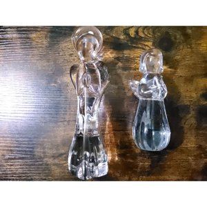 vintage twos company set of 2 hand made clear chrystal heavy glass angel/little girl angel